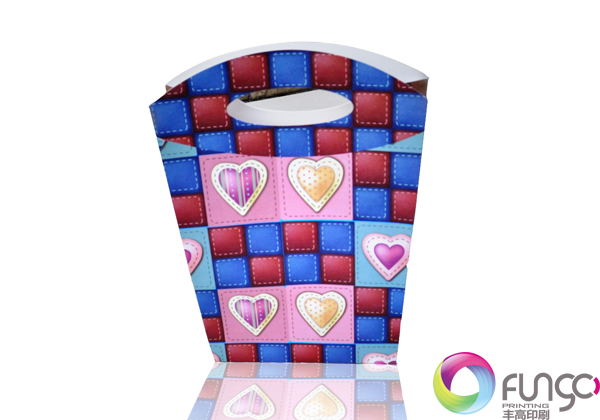 精美手提袋制作,通過(guò)模切,切出手挽的位置。色彩鮮艷豐富,效果精美。