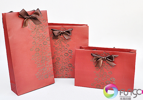 本產(chǎn)品是紙質(zhì)手提袋印刷后,經(jīng)熟手工人巧手串上精美的絲帶,并黏上各式各樣的蝴蝶結(jié),成為較為高檔手提袋。
